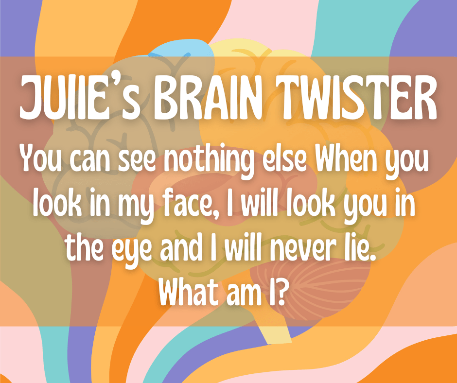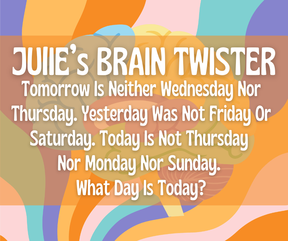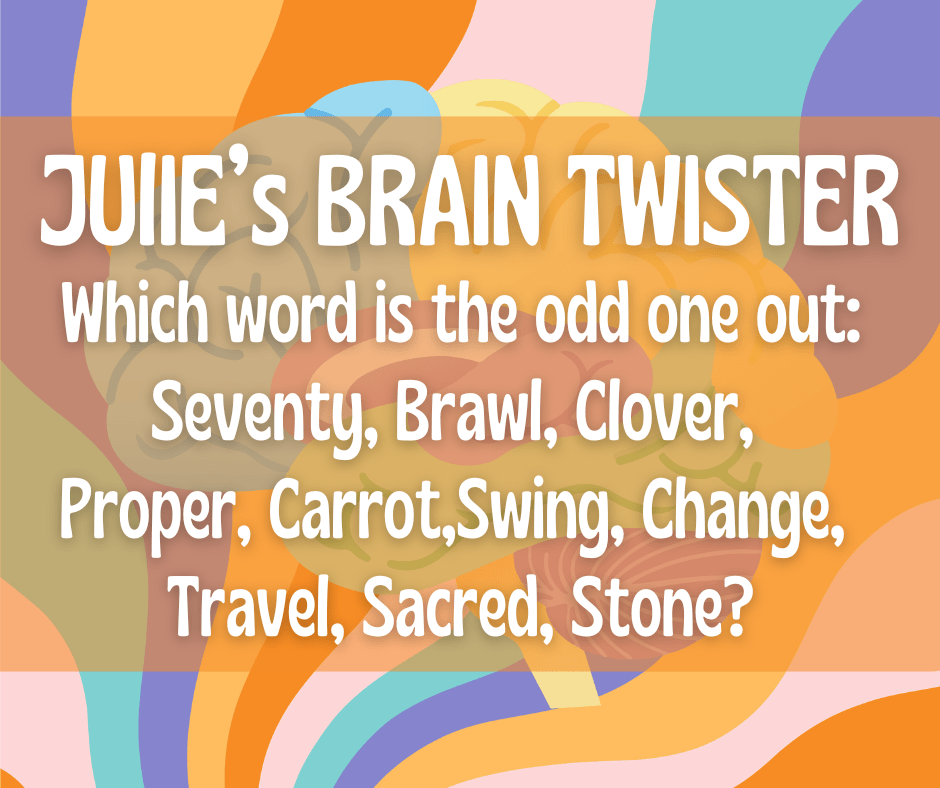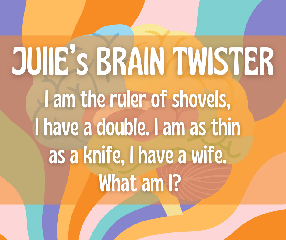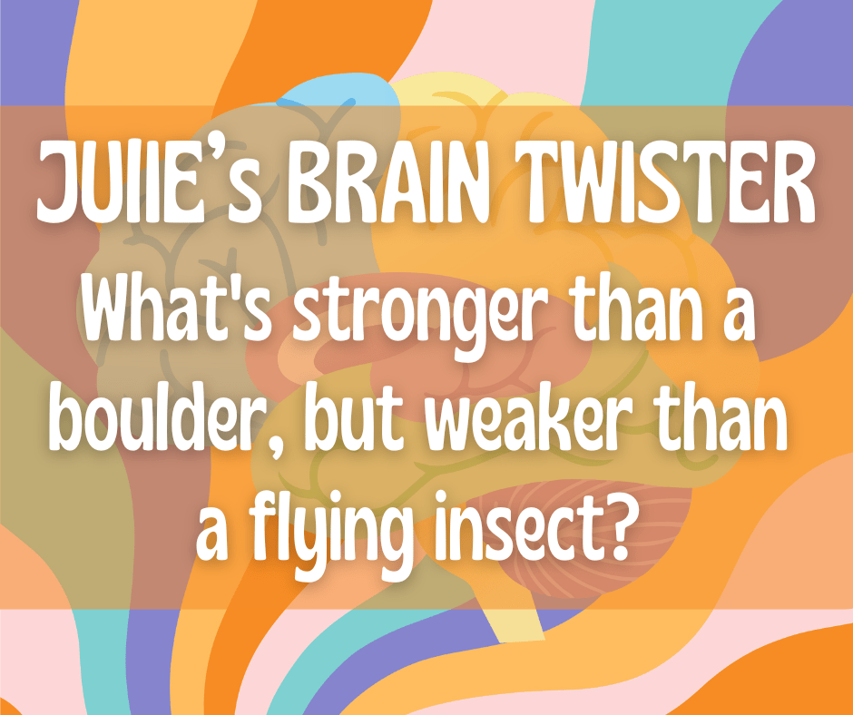 Here are some of Julie’s wildly popular brain twisters, in one place for you to browse and share. Once you’ve given up and cannot guess, click on the image and the answer will show beneath it.